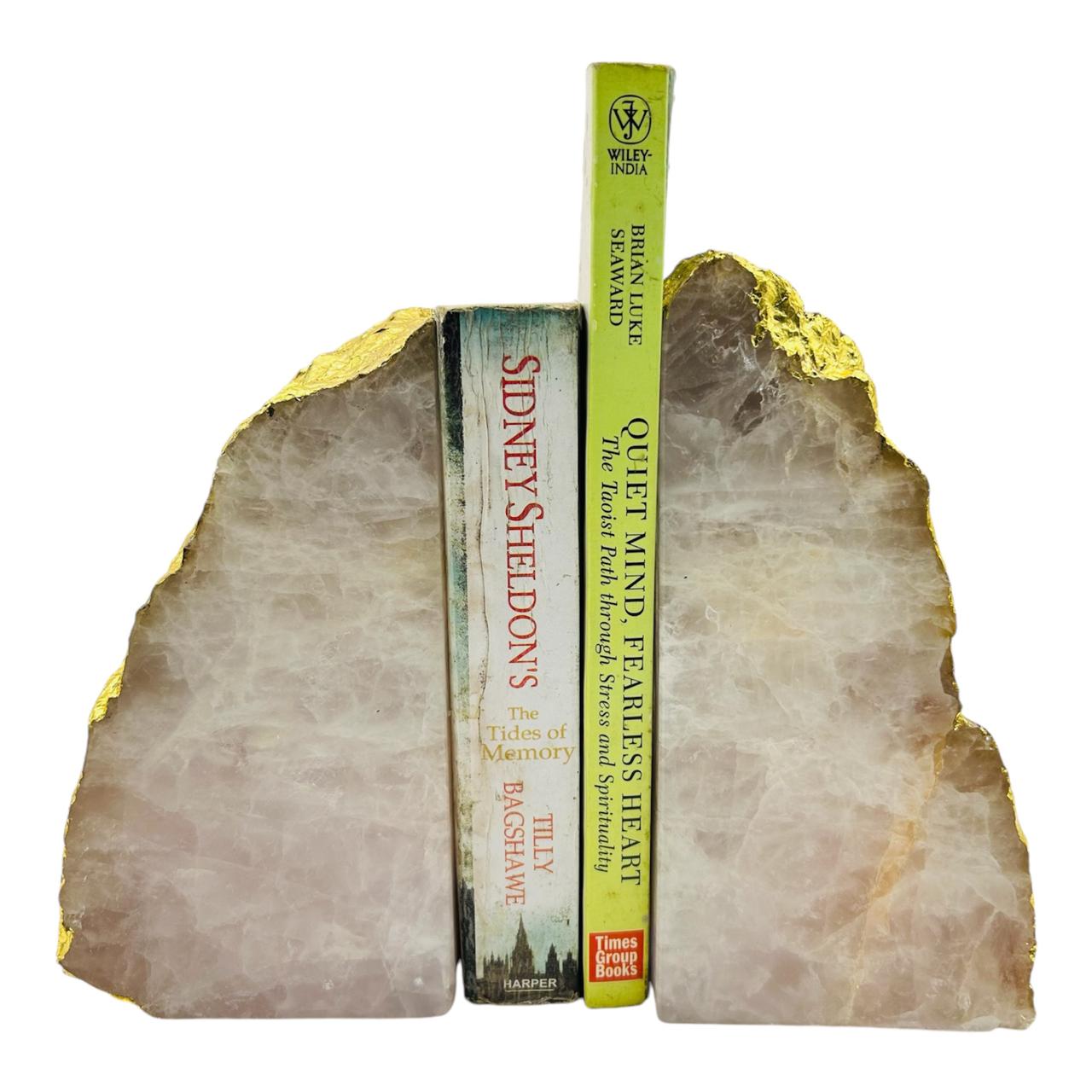 Rose Quartz Natural Shape Bookends with Golden Leafing